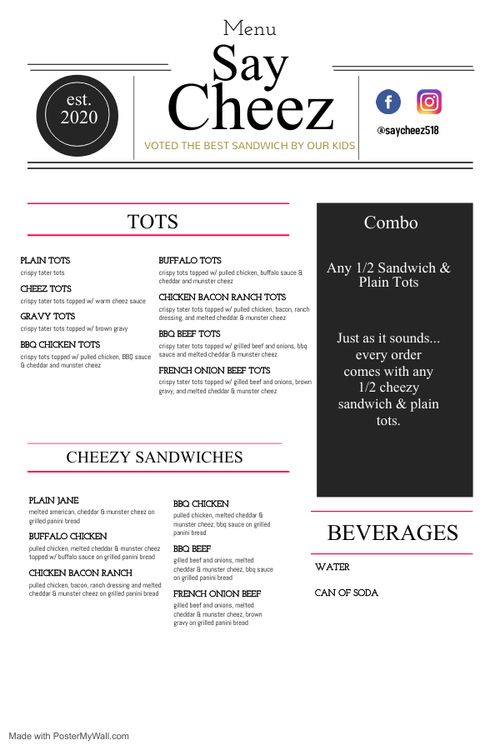 See below for menus and pricing