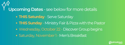 Learn more about serving opportunities at Princetown Church at our Ministry Fair on this Sunday.